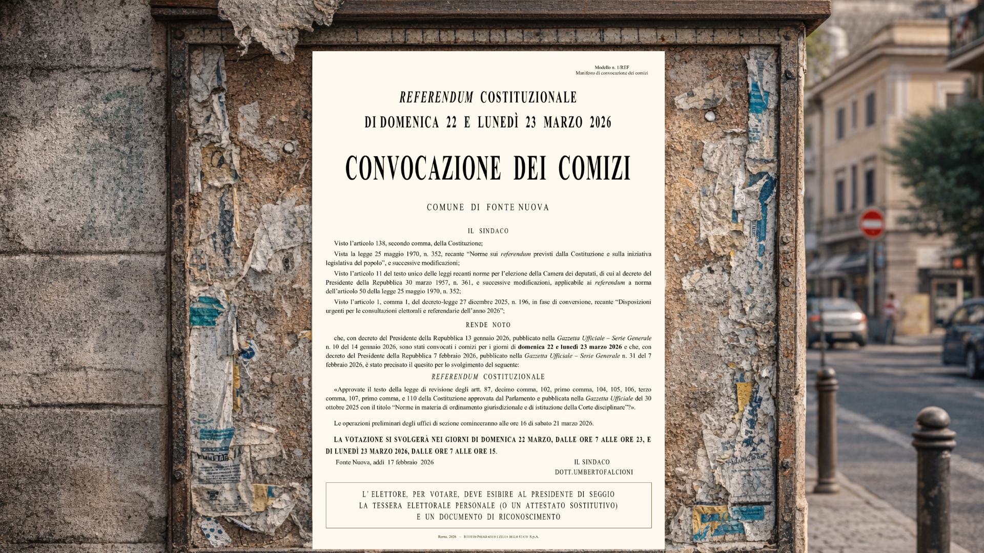 Referendum Costituzionale di Domenica 22 e Lunedì 23 Marzo