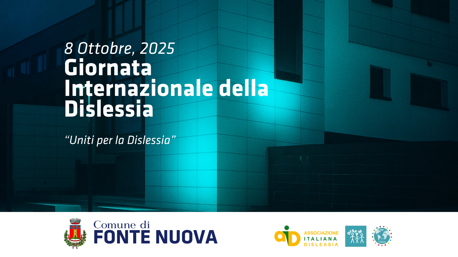 Il Comune di Fonte Nuova aderisce alla campagna internazionale “Uniti per la Dislessia”, che si celebra l’8 ottobre, illuminando la Torre Civica con il colore azzurro turchese, simbolo di consapevolezza e sostegno alle persone con dislessia.