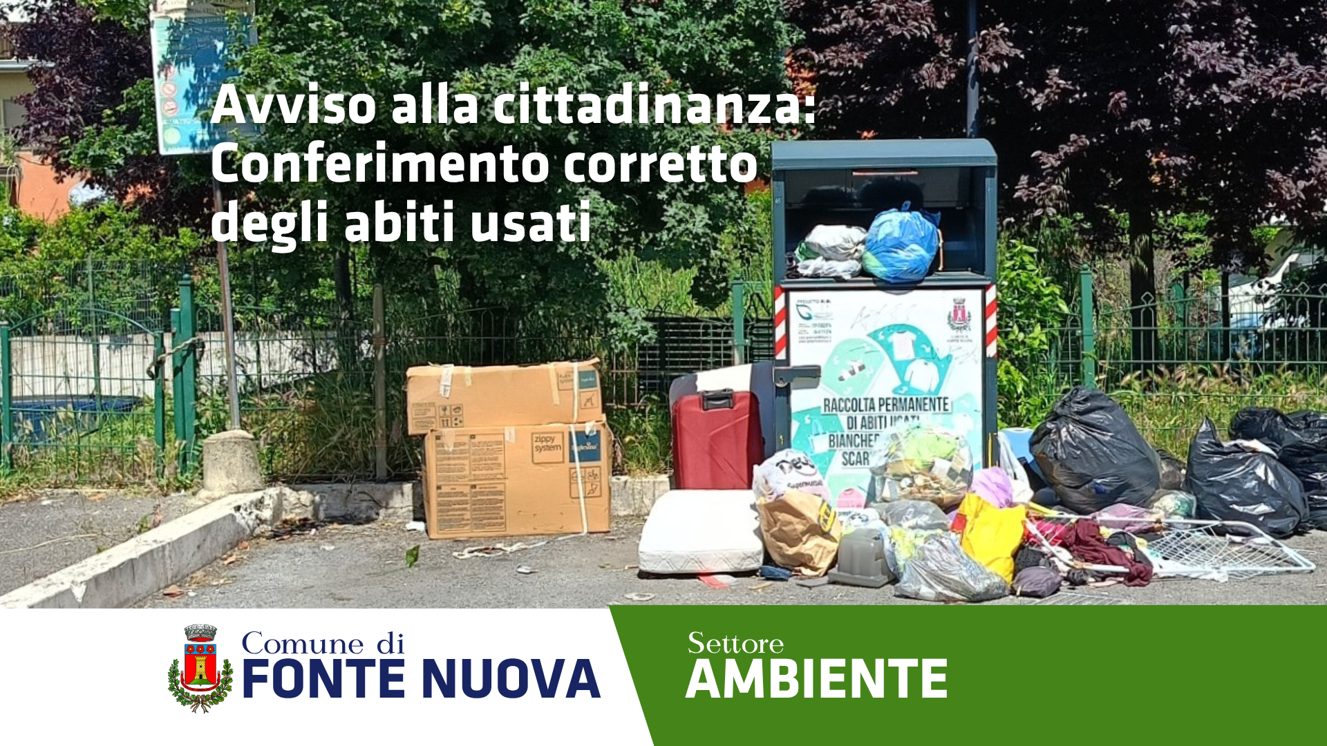 Il Settore Ambiente del Comune di Fonte Nuova informa la cittadinanza in merito alle modalità corrette per lo smaltimento degli abiti usati.