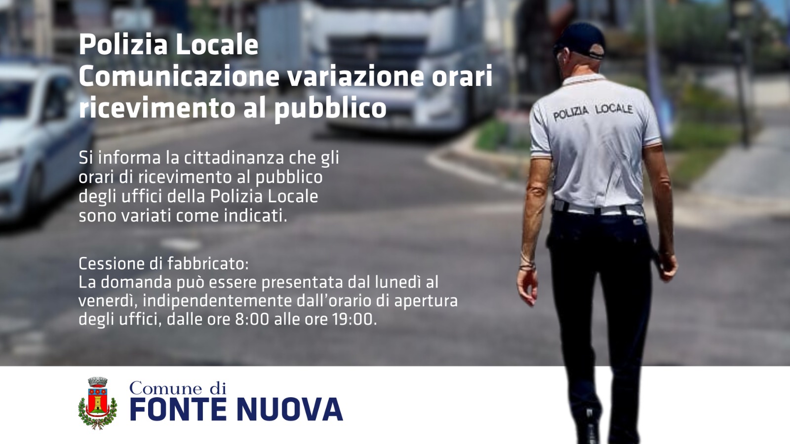 Con il presente avviso si comunica alla cittadinanza la variazione degli orari di ricevimento al pubblico degli uffici della Polizia Locale.