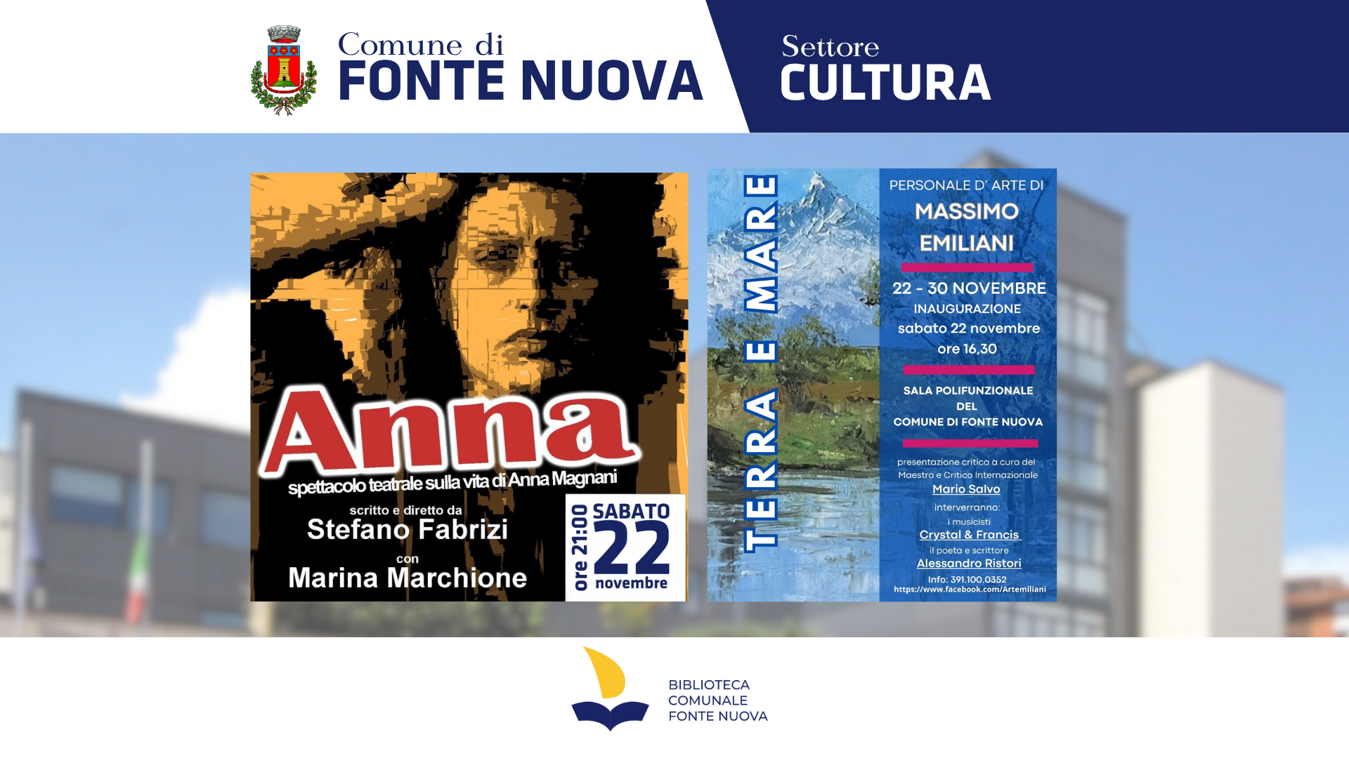 Il Comune di Fonte Nuova informa la cittadinanza che sabato 22 novembre 2025 la Biblioteca Comunale “Salvatore G. Vicario” ospiterà due iniziative culturali, promosse per arricchire l’offerta artistica e teatrale della città e favorire la partecipazione della comunità.