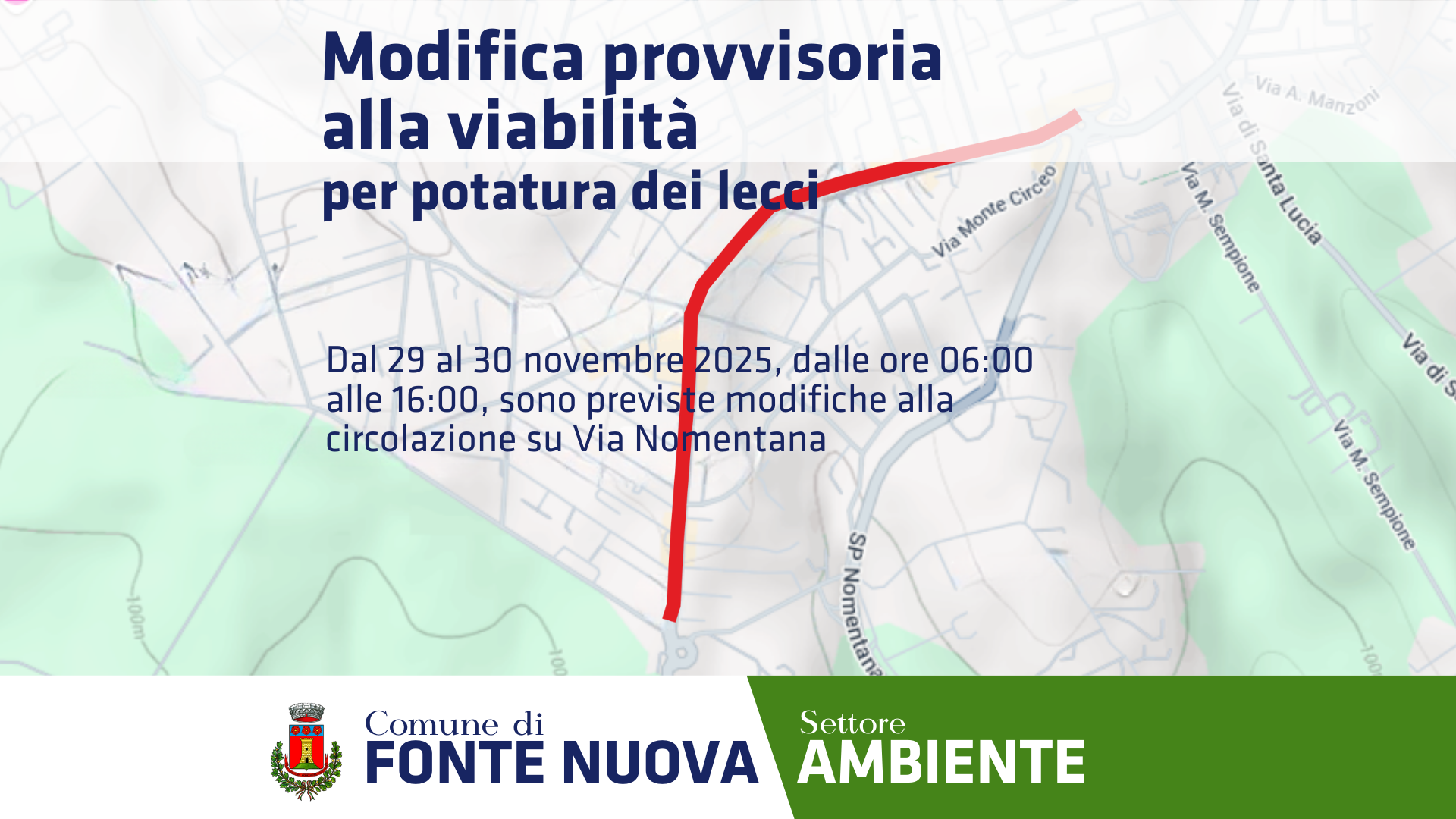 Il Comune di Fonte Nuova informa la cittadinanza che, con Ordinanza della Polizia Locale n. 213 del 28/11/2025